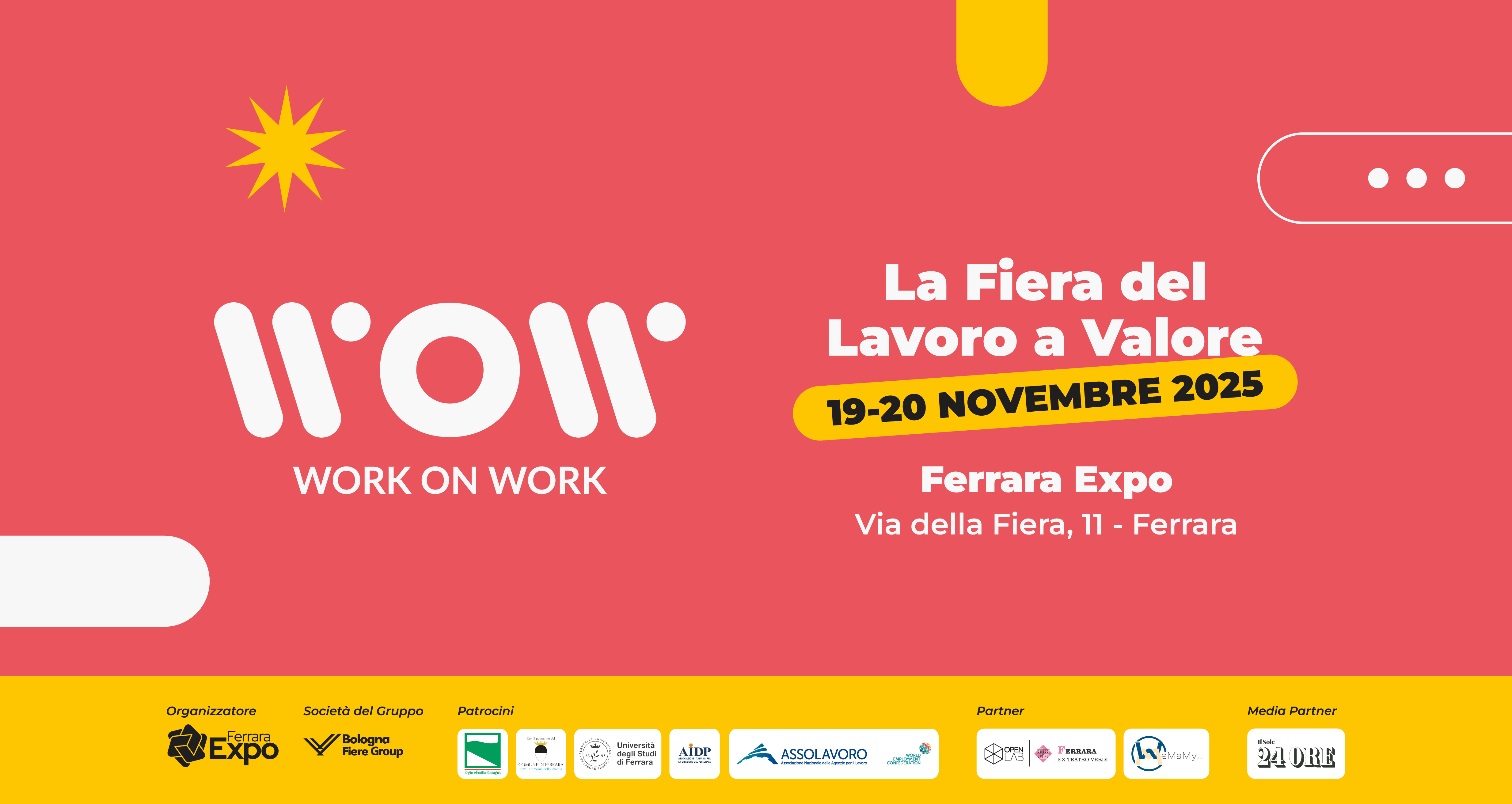 Il Ministero del Lavoro e delle Politiche Sociali parteciperà alla seconda edizione di “Work on Work”, la Fiera nazionale dedicata al mondo del lavoro, in programma il 19 e 20 novembre 2025 presso il Quartiere fieristico di Ferrara.